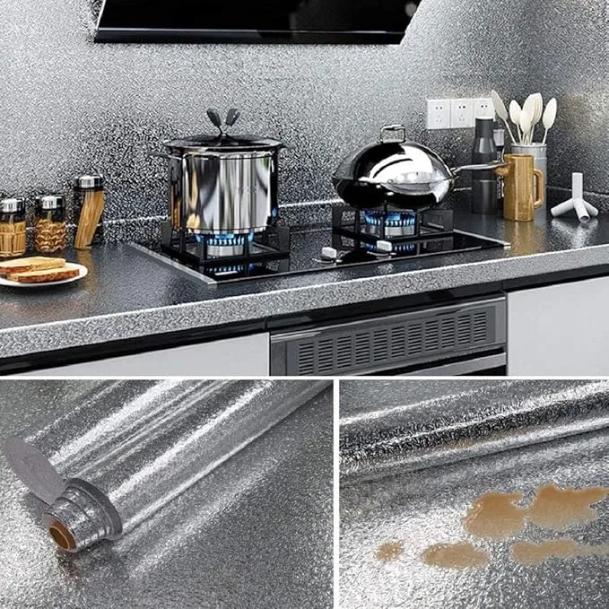 3 Meter Waterproof Oil-Proof Self Adhesive Aluminum Foil Wall Sticker Home Kitchen Decor Stove Cabinet Stickers, Wallpaper Removable Wall Protector Sticker