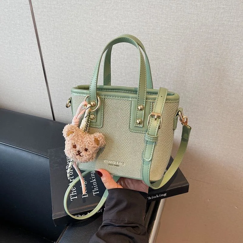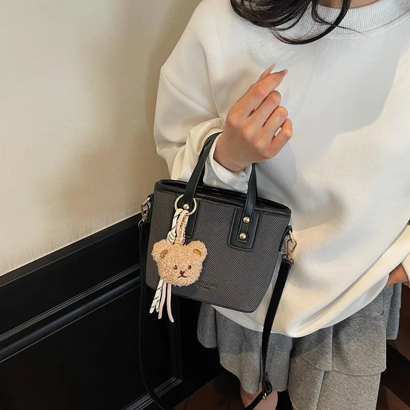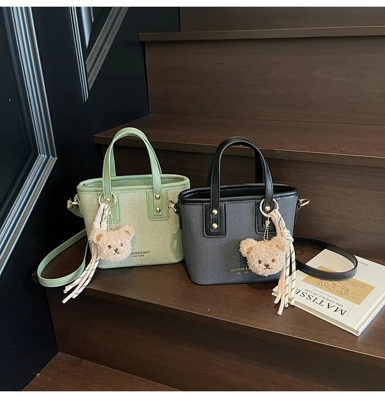 Cute Mini Tote Bag with Bear Charm – Stylish Compact Handbag for Everyday Use