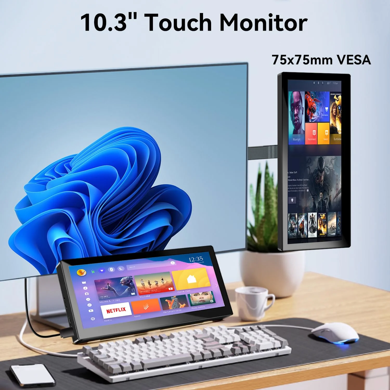 10.3 Inch Portable Touch Screen Monitor with 10-Point Touch, HDR Display & VESA Mount Support