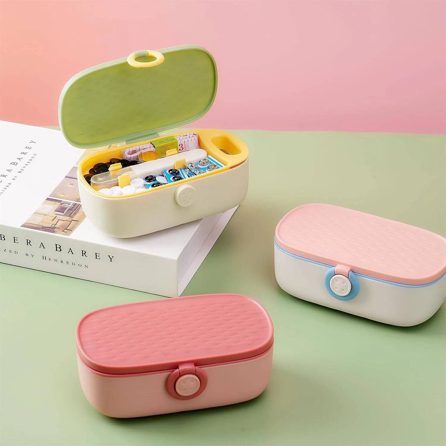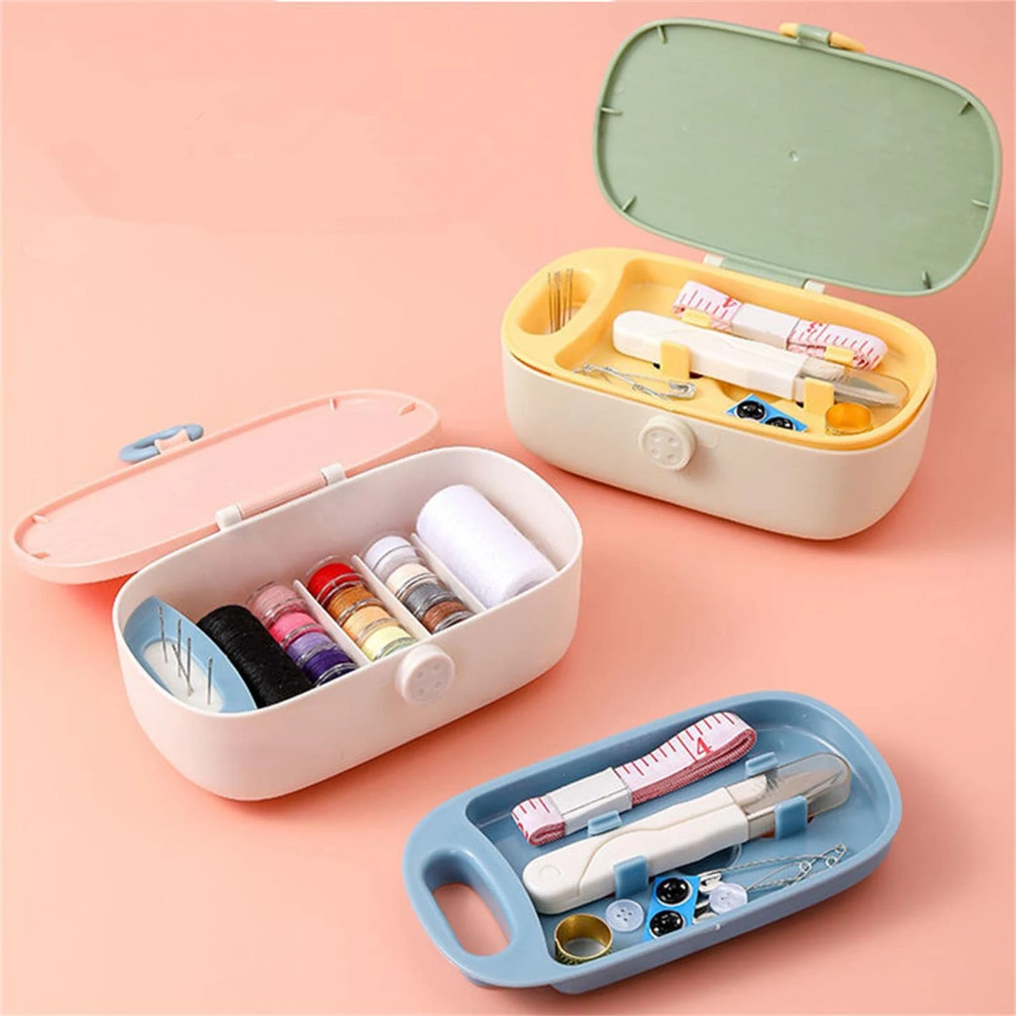 This compact sewing kit organizer is a smart and stylish solution for quick clothing repairs and everyday stitching needs. Designed in a sleek oval shape with soft pastel tones, it fits comfortably in your hand while offering a neat, clutter-free storage layout inside. The sturdy outer case protects the contents, while the smooth snap-lock closure keeps everything securely in place, making it perfect for home use, travel, or office drawers.