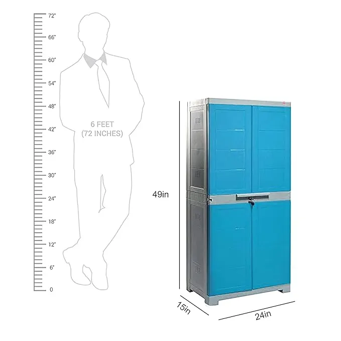 Organize your home effortlessly with this Free-Standing Plastic Cupboard / Storage Cabinet / Wardrobe, designed for everyday convenience and reliable storage. Its grey and blue color combination offers a clean and modern look that fits easily into bedrooms, living rooms, kitchens, or storage areas. Made from durable plastic, it is lightweight, easy to move, and simple to maintain.